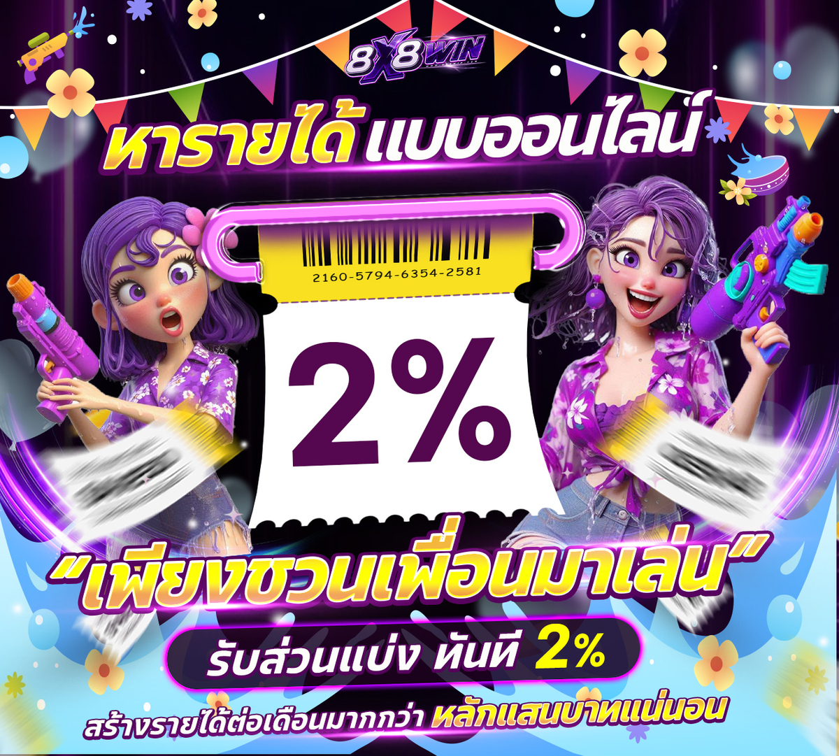 ชวนเพื่อนมาเล่นกับ 8X8WIN รับส่วนแบ่งทันที 2%